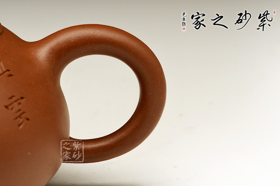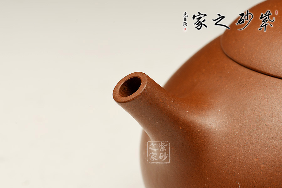 壺身形體飽滿、渾圓如珠、光滑細致;壺嘴、壺把、壺鈕與壺身搭配協(xié)調(diào)、比例勻稱;壺嘴出水有力,壺把力度感強,壺蓋設(shè)計豐腴,口蓋嚴密。各部銜接不見痕跡、和諧自然、渾然一體,流暢的線條強化了律動的視覺效果。