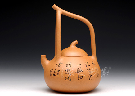 曼生十八式中的其中一種——瓢提。此壺意境深遠(yuǎn),融通古今,寓意壺主人熱情好客,以致高朋滿座,尤以壺身銘文最具文化氣息,耐人尋味。