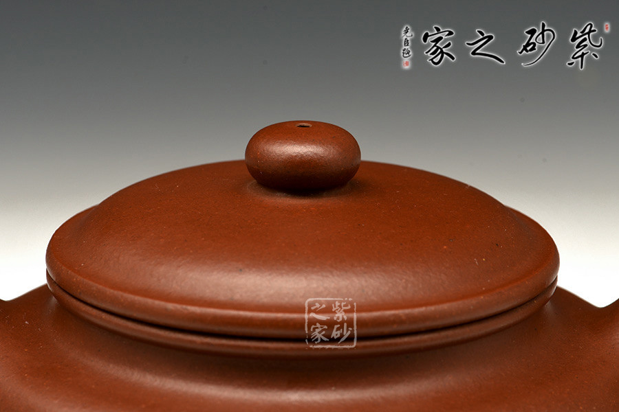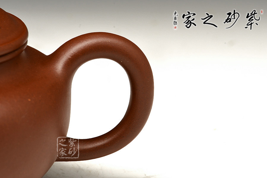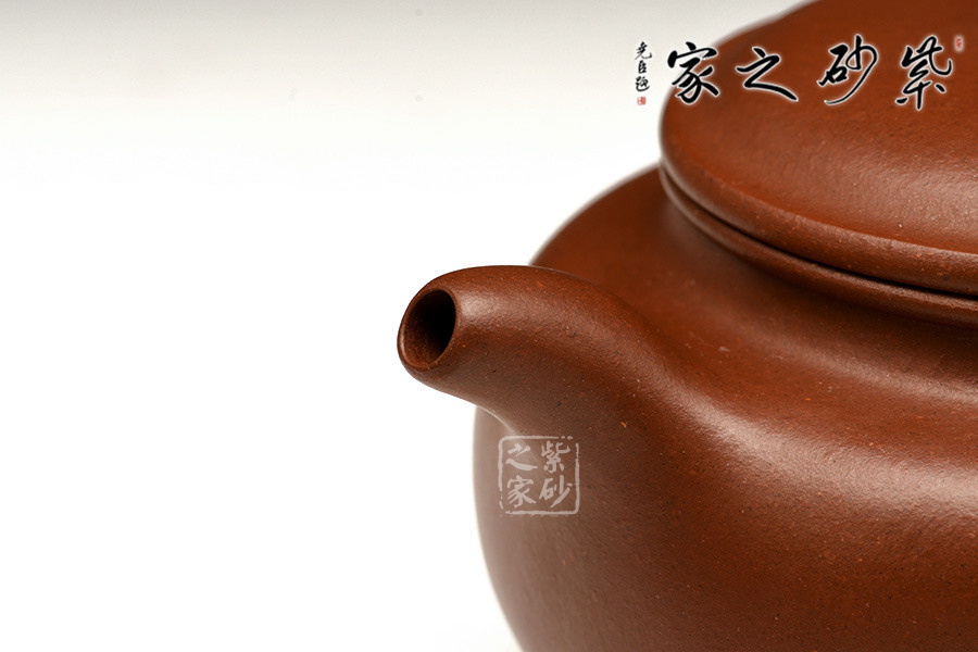 仿古內(nèi)斂而低調(diào),有俊挺端莊之風(fēng)。細(xì)觀壺形,上下約縮,腰略鼓,狀猶如一扁鼓。造型古雅樸拙,比例協(xié)調(diào),結(jié)構(gòu)嚴(yán)謹(jǐn),線條收放自如,氣度不凡,凸顯渾樸莊重之美。