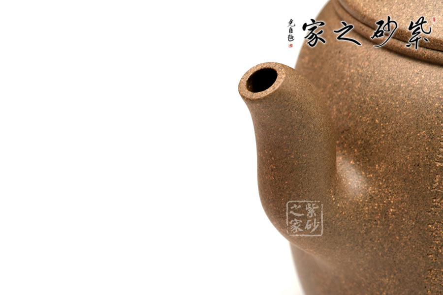 作品壺嘴上揚胥出,流口簡練,耳形環(huán)把,曲線明顯,風格柔美。加上拱起的壓蓋和高聳的珠形鈕,整體審美趣味性佳、實用性強。