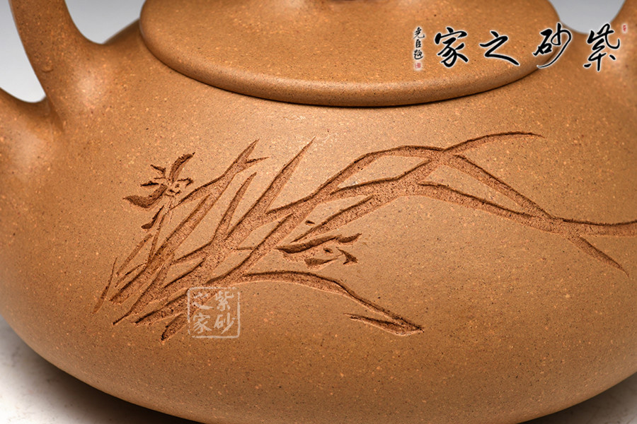 泥性:感甜嫩綿密,質(zhì)堅而溫潤,呈近田黃色調(diào),為江蘇宜興趙莊山系朱泥礦~黃石黃之共生礦,經(jīng)挑揀練製而成,因含鐵量只達(dá)6%左右,致陶之后呈“金田黃色”。