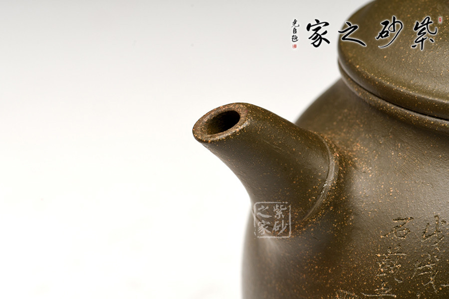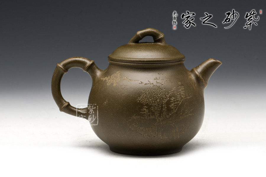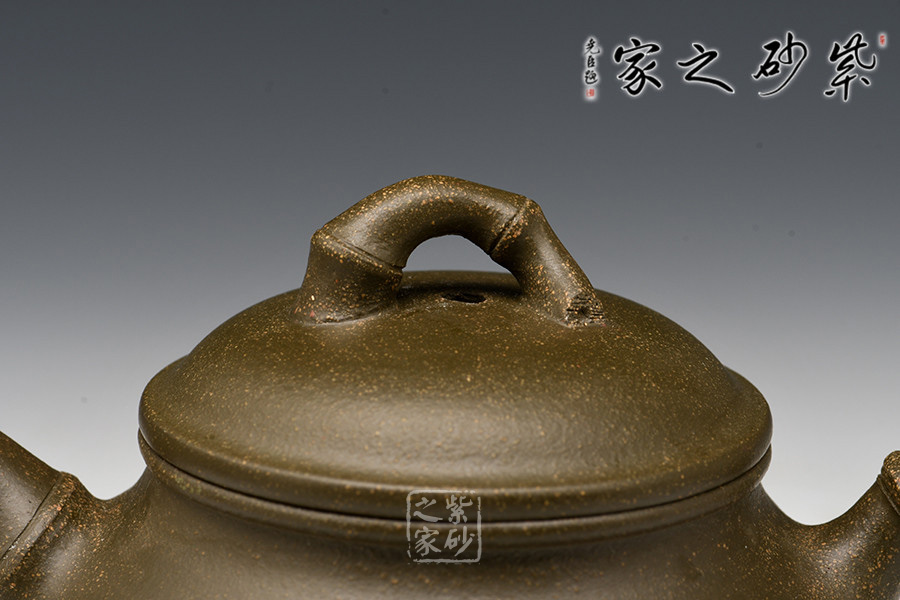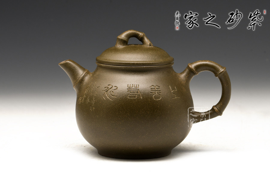 原礦墨綠泥制壺,泥色青藍(lán)略泛綠光,更貼合竹之青韻。稍一泡養(yǎng),色調(diào)更形穩(wěn)實(shí),溫潤透明,變化甚巨,玩賞深具成就感。