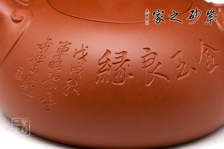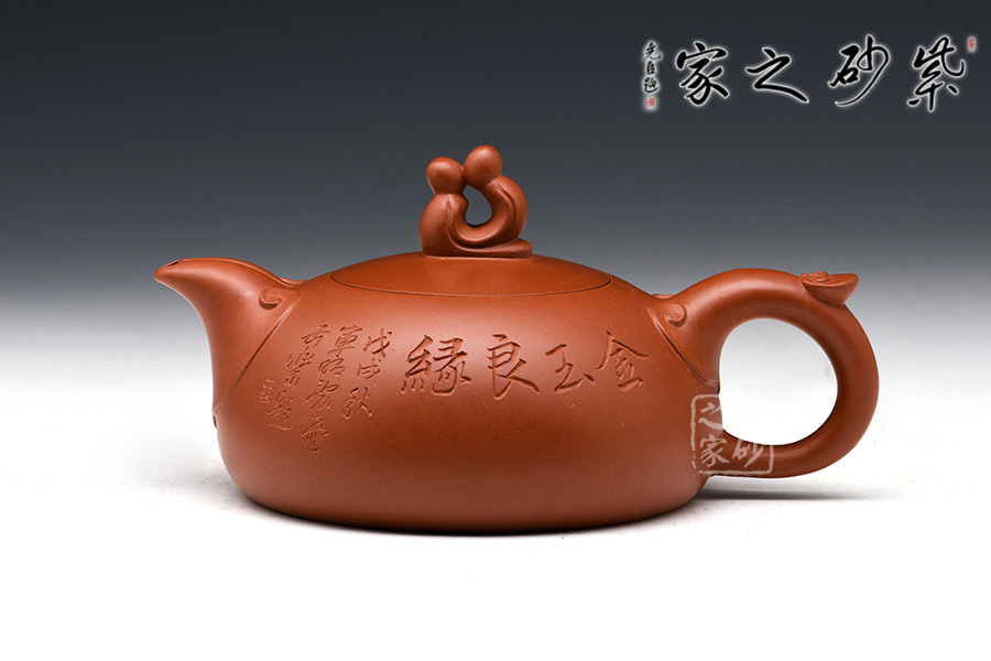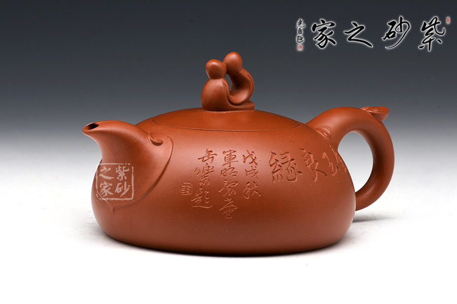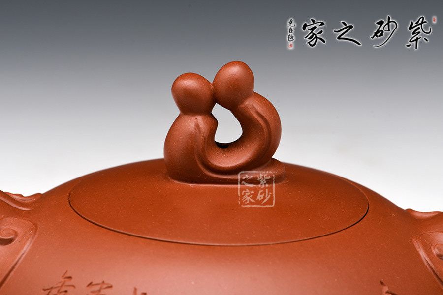 此壺作為新人賀禮或自用,都是不可多得的佳作。觀此壺,首先最吸引人的就是壺鈕,兩小人依偎對坐親吻,那種甜蜜溫馨讓人感動至深。