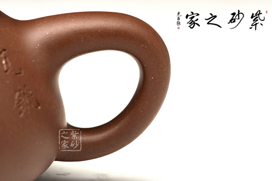此作呈橢圓形,上窄下寬,頗具備分寸感,壺身豐滿,雖型制為幾何型,但每根線條飽含了柔潤,充分展出了線條的軟而韌度。