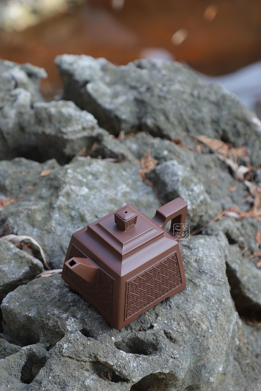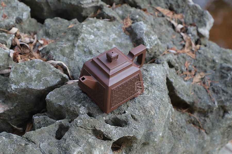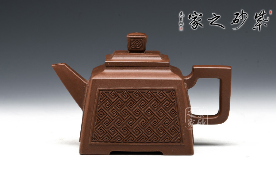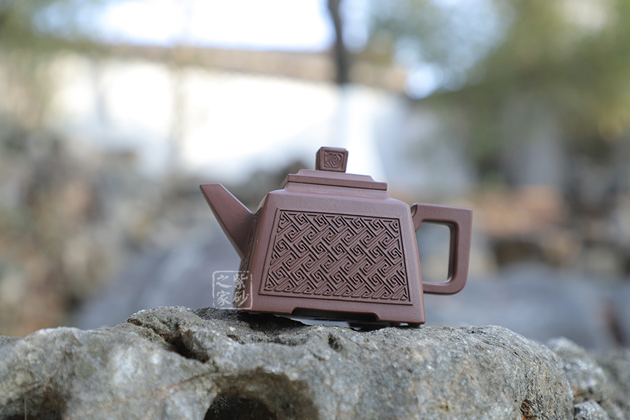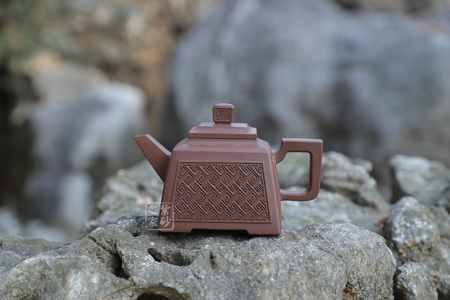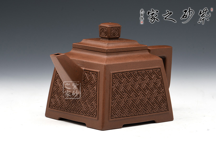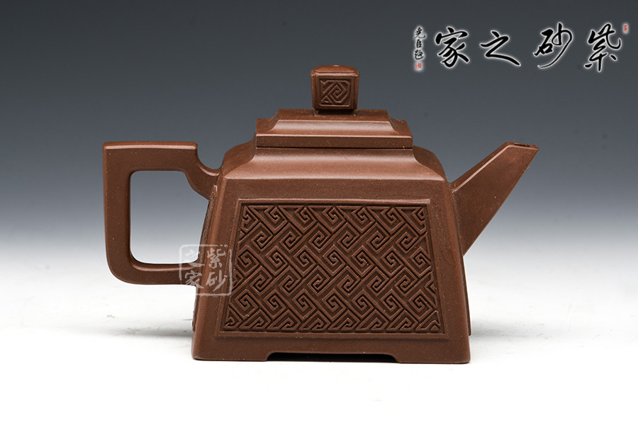 壺型:貴方壺為四方方器,作品形體優(yōu)美,工藝嚴(yán)謹(jǐn),氣韻生動,造型古樸。整體壺行透露出豪爽、剛勁、正直的陽剛之氣;比例準(zhǔn)確,口蓋緊密平整,塊面挺括,線條利落,力度到位。