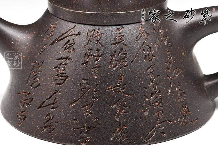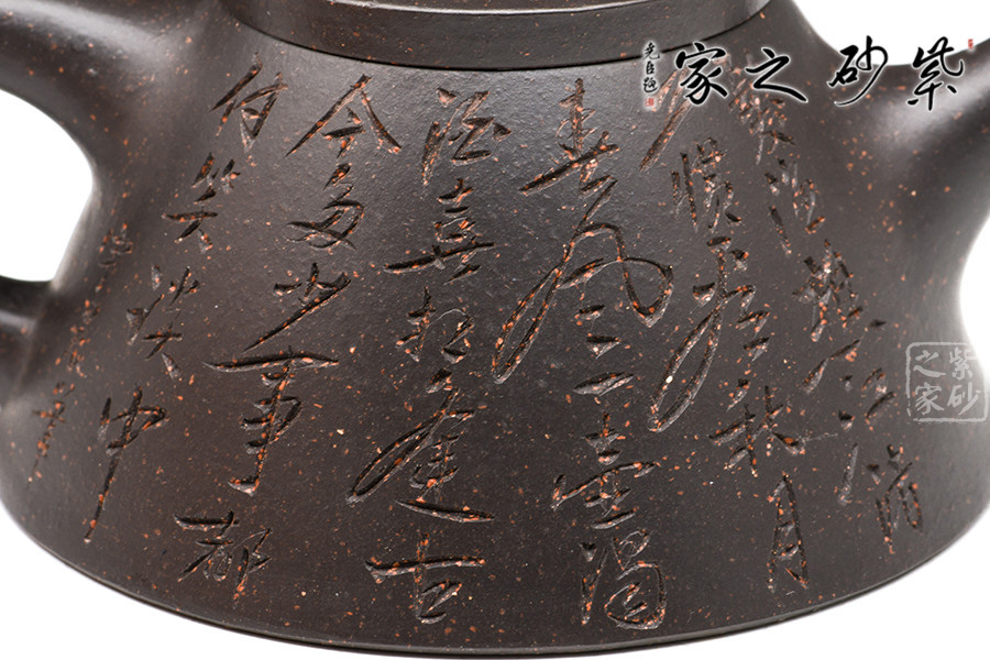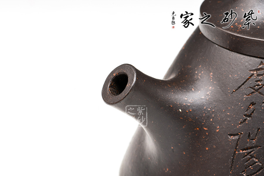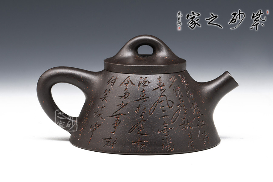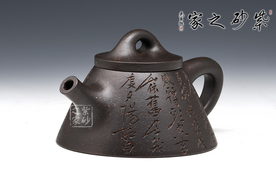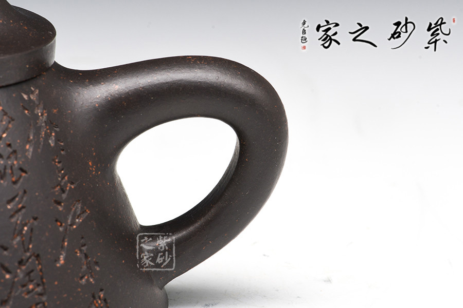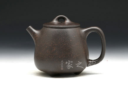 為早期最常見(jiàn)通用泥料之一 。 為江蘇宜興黃龍山原礦提練再加入錳而成,當(dāng)時(shí)因礦脈里鐵質(zhì)成份較高,所生產(chǎn)的茶壺會(huì)產(chǎn)生火疵、小熔點(diǎn),日久使用,獲早期壺識(shí)者深愛(ài)、贊賞。養(yǎng)壺者之最愛(ài)。新壺初用砂土氣重,茶湯略現(xiàn)砂氣,經(jīng)長(zhǎng)期使用壺身展現(xiàn)出灰黑,泡茶數(shù)日則如墨黑,泡茶好,易包漿,好評(píng)不斷、贊不絕口!黑鐵砂,這種泥料名詞的定義要追溯到80年代初期。宜興紫砂一廠曾用這批泥料做過(guò)一些壺。例如水平壺之類的,這種泥的含鐵量極高,不但可以泡普洱,其逼熱之高甚至可以泡觀音。而這批壺的產(chǎn)量極少,因?yàn)楹阼F砂的稀缺,可見(jiàn)其相當(dāng)珍貴。