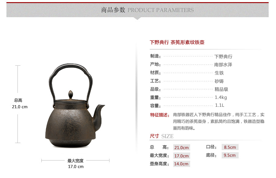 下野典行 茶筅形素紋鐵壺 [ 編號:70385 ]