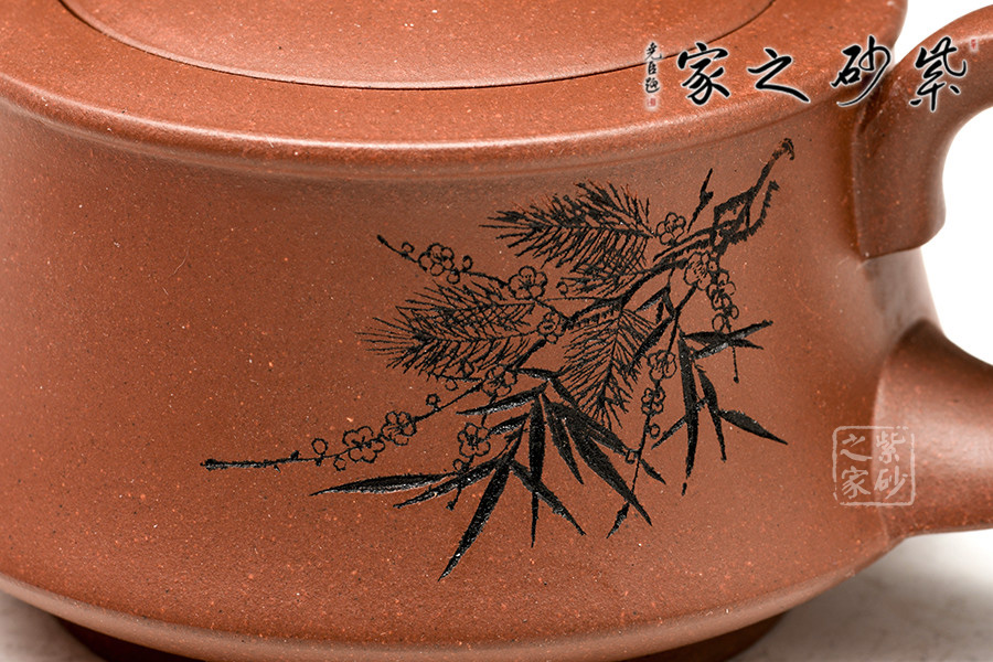 A面: 裝飾: 松竹梅 裝飾者:陶金蘭 裝飾內(nèi)容: 松竹梅三種混合刻繪,竹之勁、梅之秀、松之韻,更添文人之意味