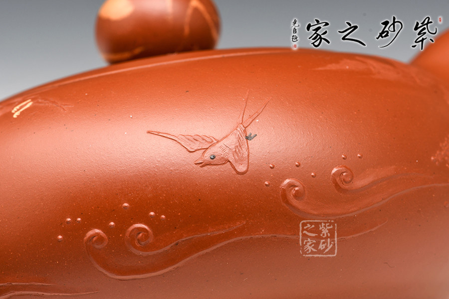 壺身上裝飾的洶涌潮水、飛舞海雁為點(diǎn)睛之處,為此壺增添了靈動(dòng)生機(jī)之感,同時(shí)也是壺名“春江壺”的體現(xiàn)。