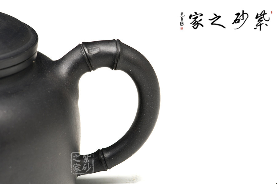 壺把上彎度有張力,下彎度有收勢,竹骨處呈自然彎勢,與壺身呼應,握把空間舒適,多一分顯臃腫,少一分顯壓抑。