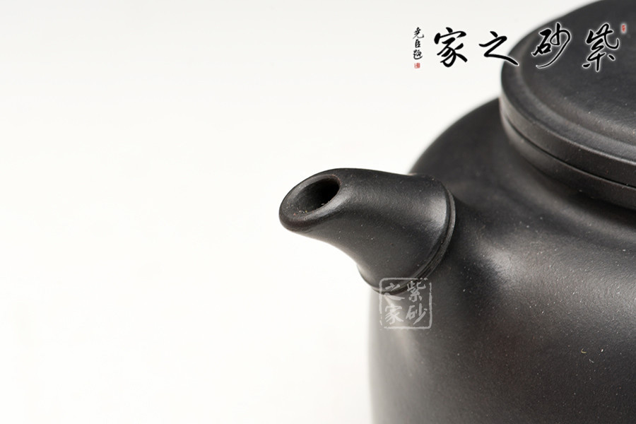 整把作品講究線條美,壺口線條與壺底線條保持比例協(xié)調,上下呼應,落落大方。