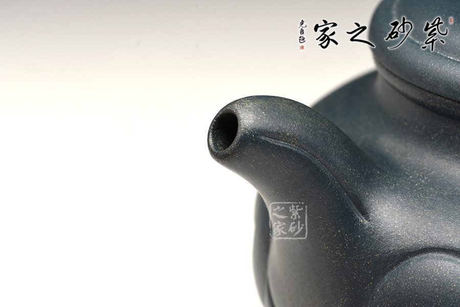 特點(diǎn):泥色特異,青藍(lán)色中略泛綠光,清秀獨(dú)特;稍一泡養(yǎng),色調(diào)更形穩(wěn)實(shí),溫潤(rùn)透明,變化甚巨,玩賞深具成就感。