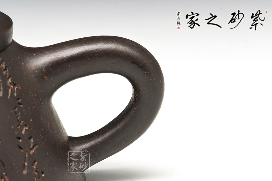 為早期最常見通用泥料之一 。 為江蘇宜興黃龍山原礦提練再加入錳而成,當(dāng)時(shí)因礦脈里鐵質(zhì)成份較高,所生產(chǎn)的茶壺會(huì)產(chǎn)生火疵、小熔點(diǎn),日久使用,獲早期壺識(shí)者深愛、贊賞。養(yǎng)壺者之最愛。新壺初用砂土氣重,茶湯略現(xiàn)砂氣,經(jīng)長(zhǎng)期使用壺身展現(xiàn)出灰黑,泡茶數(shù)日則如墨黑,泡茶好,易包漿,好評(píng)不斷、贊不絕口!黑鐵砂,這種泥料名詞的定義要追溯到80年代初期。宜興紫砂一廠曾用這批泥料做過一些壺。例如水平壺之類的,這種泥的含鐵量極高,不但可以泡普洱,其逼熱之高甚至可以泡觀音。而這批壺的產(chǎn)量極少,因?yàn)楹阼F砂的稀缺,可見其相當(dāng)珍貴。