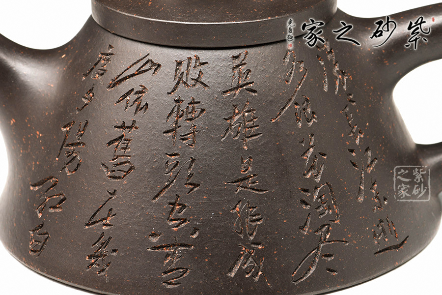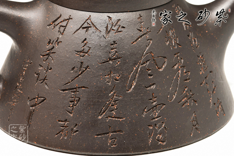 作者用嫻熟的技藝塑造了這件經(jīng)典之器,并結(jié)合精致的單雙刀陶刻,刻畫出霸氣剛毅的詩詞,所謂的清、和、雅、正,本該如此!