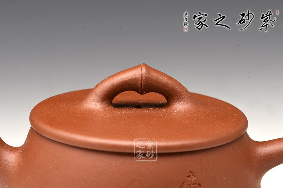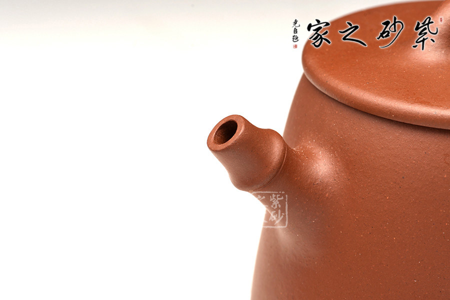 壺身呈梯形,壺把銜接處處理的干凈利索,弧度貼合手型,手持舒適。直線型嘴,提供了通暢有力的出水流線。橋梁鈕是關(guān)鍵之處,高矮跨度和諧有致。