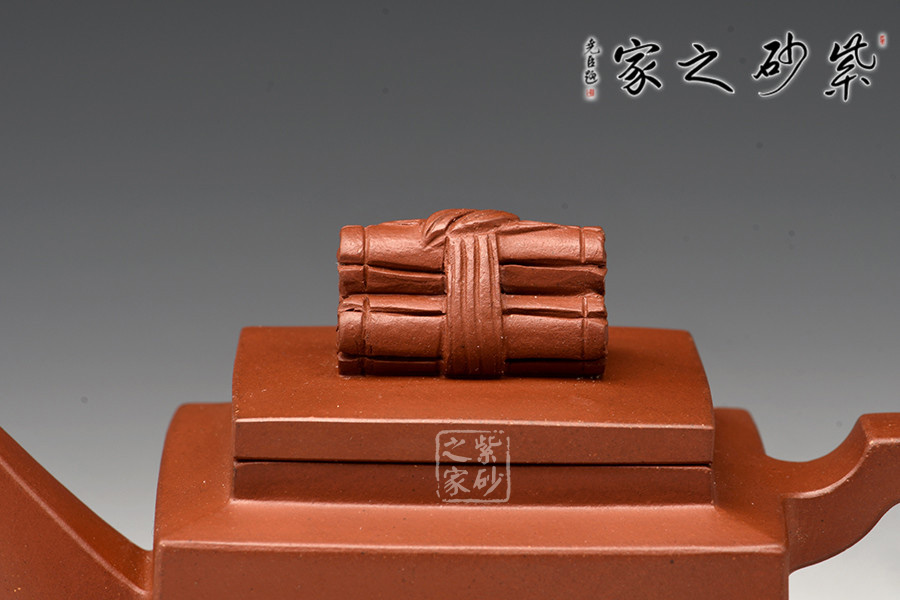 作品亮點(diǎn)在于古代書(shū)卷形的壺鈕,壺身為車,鈕為書(shū),對(duì)應(yīng)壺名“學(xué)富五車”,寓意深厚,美滿祝福。