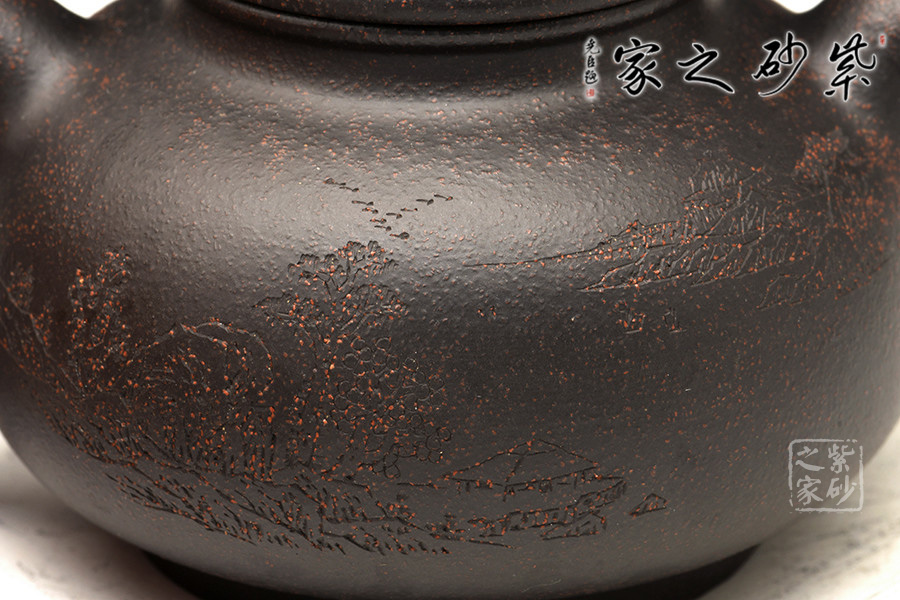 黑金砂是紫泥里的一種,原礦里含錳高,含鐵紅粉豐富,所以經(jīng)過高溫?zé)珊髩厣硗w烏黑油亮隱隱泛著紅色的顆粒有如亞金一樣,故稱黑金砂,泥料含有朱砂,段泥砂的屬性,容易泡養(yǎng)。黑金砂紫泥中的精品