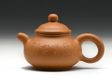 光貨離不開裝飾。俗話說“壺隨字貴,字隨壺傳”:光壺不刻字,就是一把光壺;壺上面刻了大師、名人的字,一把壺的含金量就高了,收藏價(jià)值就更高,升值潛力就更大。王福君與中國工藝美術(shù)大師譚泉海合作最多,其次是徐安碧、鮑志強(qiáng)、毛國強(qiáng)(均為中國工藝美術(shù)大師、中國陶瓷藝術(shù)大師)。