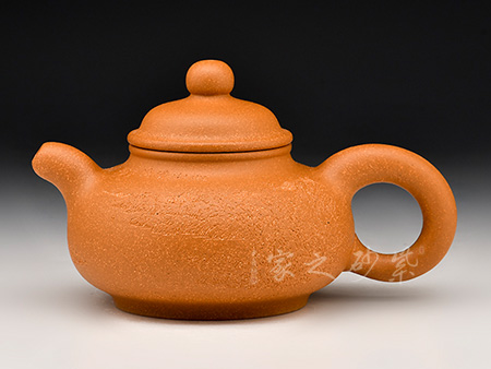 圓鈕,線條圓潤流暢,毫無滯澀之感。比例協(xié)調(diào),點(diǎn)線之間見魅力,骨肉停勻,簡練大方,制作頗見功力。截蓋嚴(yán)絲合縫,壺嘴壺把舒曲自然,宛若從壺體中天然生出一般。彎流嘴胥出,在端頭下壓,柔美之姿明顯,壺柄略微上抬之后優(yōu)雅滑落而下,非常有古典的韻味。