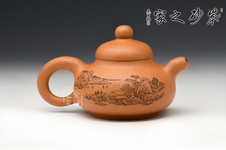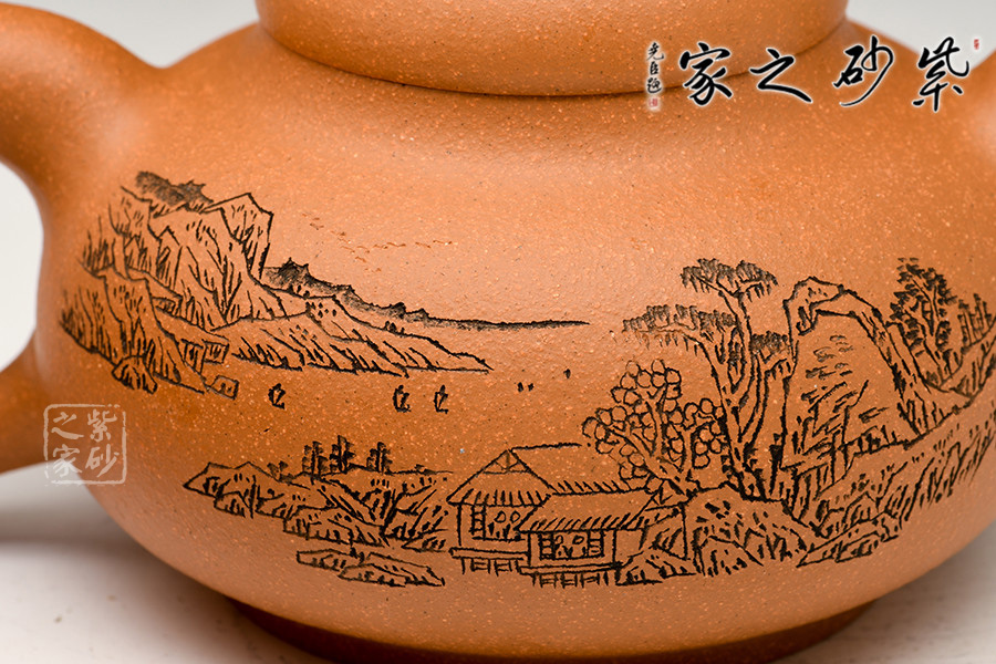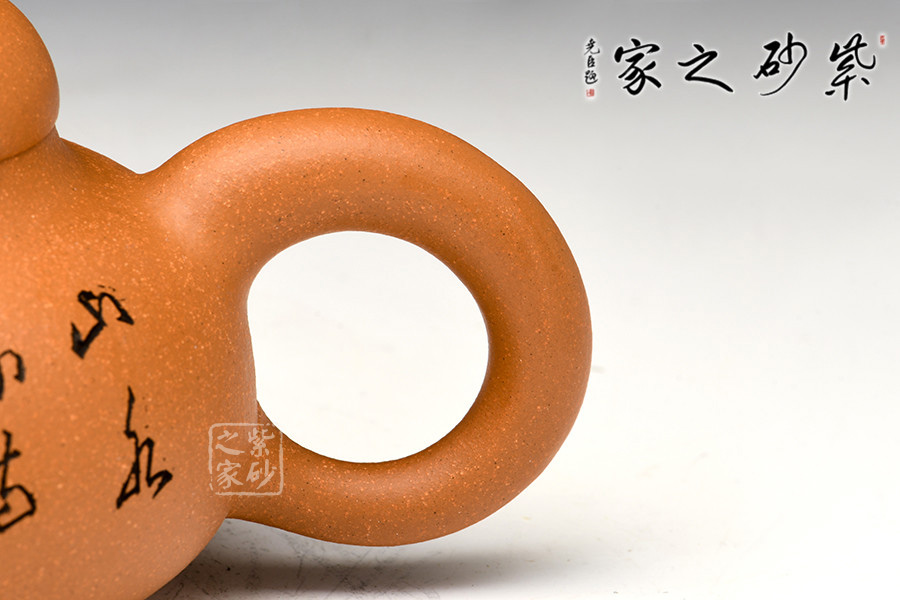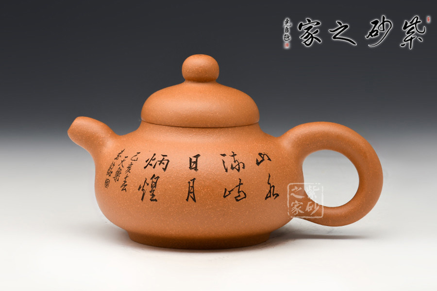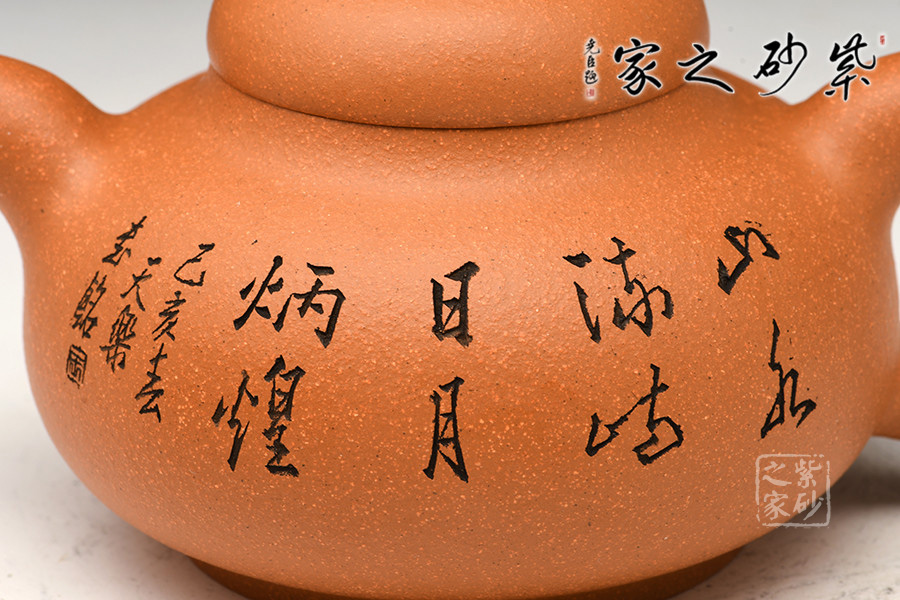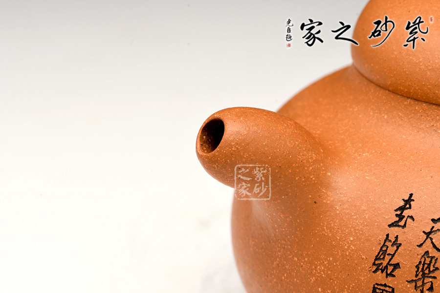 光貨離不開裝飾。俗話說“壺隨字貴,字隨壺傳”:光壺不刻字,就是一把光壺;壺上面刻了大師、名人的字,一把壺的含金量就高了,收藏價值就更高,升值潛力就更大。王福君與中國工藝美術(shù)大師譚泉海合作最多,其次是徐安碧、鮑志強、毛國強(均為中國工藝美術(shù)大師、中國陶瓷藝術(shù)大師)。