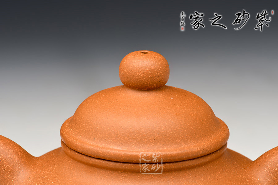 圓鈕,線條圓潤流暢,毫無滯澀之感。比例協(xié)調(diào),點線之間見魅力,骨肉停勻,簡練大方,制作頗見功力。截蓋嚴(yán)絲合縫,壺嘴壺把舒曲自然,宛若從壺體中天然生出一般。彎流嘴胥出,在端頭下壓,柔美之姿明顯,壺柄略微上抬之后優(yōu)雅滑落而下,非常有古典的韻味。
