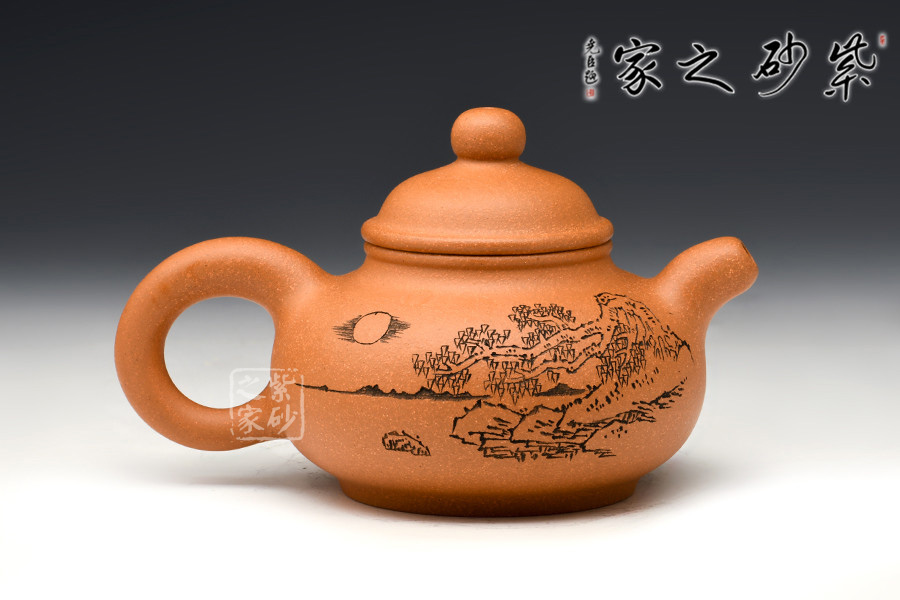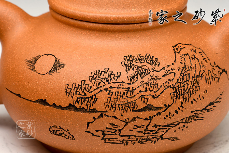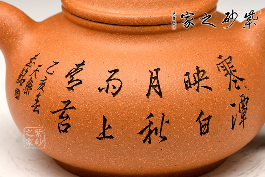 光貨離不開裝飾。俗話說“壺隨字貴,字隨壺傳”:光壺不刻字,就是一把光壺;壺上面刻了大師、名人的字,一把壺的含金量就高了,收藏價值就更高,升值潛力就更大。王福君與中國工藝美術(shù)大師譚泉海合作最多,其次是徐安碧、鮑志強、毛國強(均為中國工藝美術(shù)大師、中國陶瓷藝術(shù)大師)。