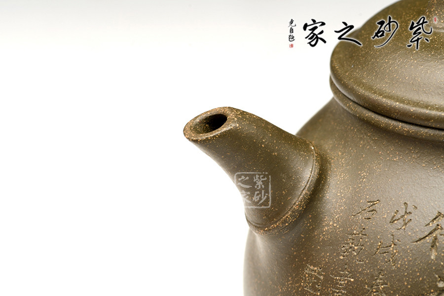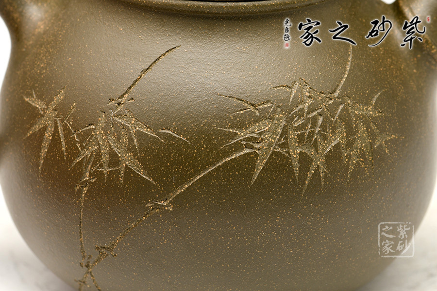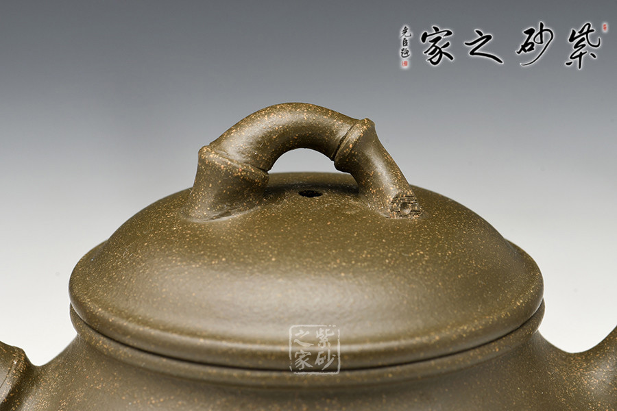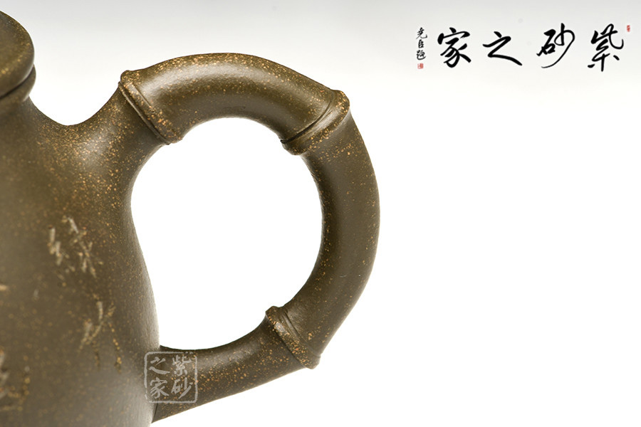 泥料:紫砂泥料也是一大特色,此作原礦墨綠泥制壺,溫潤(rùn)的色澤古樸淡雅,契合了竹子的君子之風(fēng)。