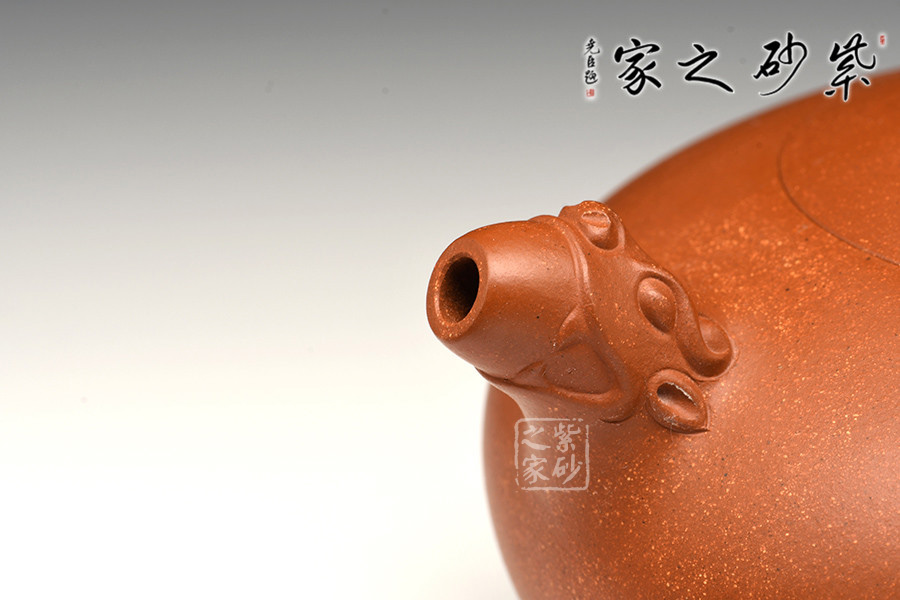 泥性:原礦因含緞泥、紅泥、紫泥等諸多共生礦,陶之后,于深沉之“橙紅色”底上,滿佈五彩斑斕的粗細(xì)、深淺之紅、黃星斑點(diǎn)。