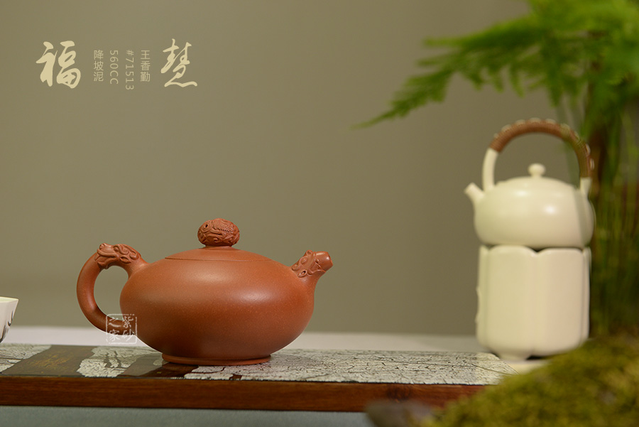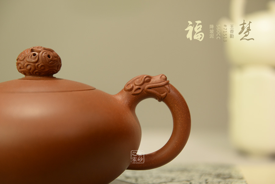 此作靈感源于“雙龍戲珠”,古典的題材,新穎的造型,傳統(tǒng)與創(chuàng)新的結(jié)合,成就了一個(gè)經(jīng)典的收藏級(jí)紫砂壺。