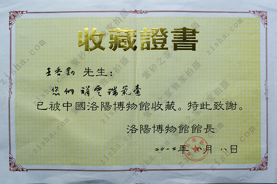 壓蓋微鼓起,其上圍繞寶珠壺鈕裝飾有連綿的如意云紋,美觀精致,更顯華麗超凡,更添情趣。