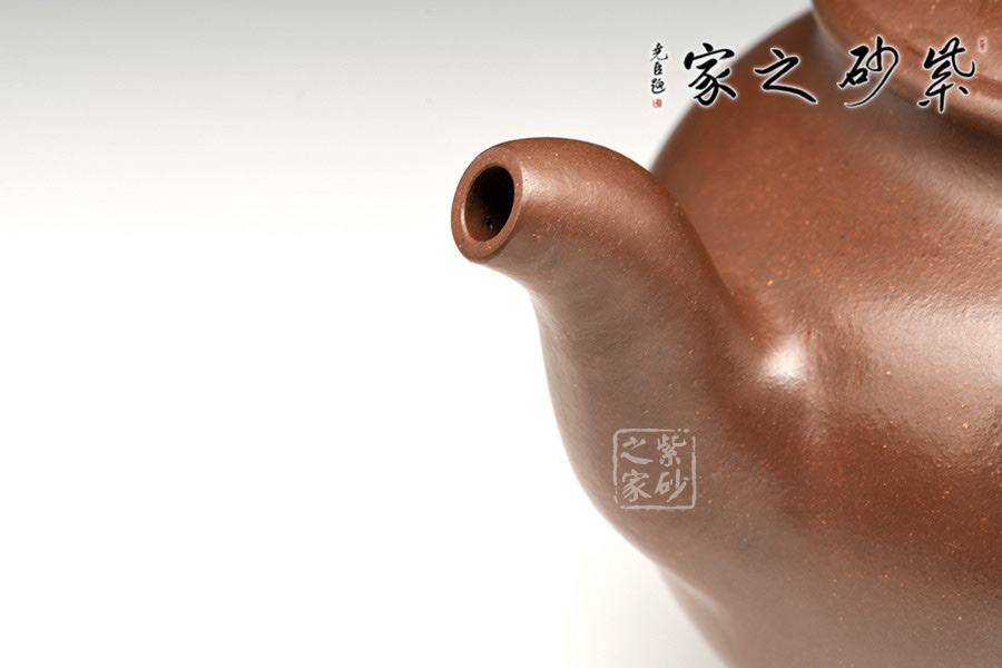 此作圓潤飽滿,工藝精致,手感舒適。線條呈現(xiàn)自然過渡,輪廓粗細(xì)不同。彎流壺嘴、耳形把,一收一放呈自然對應(yīng)。
