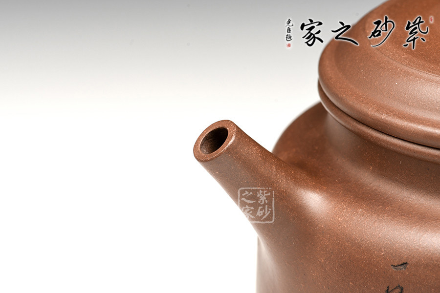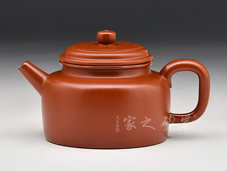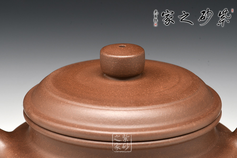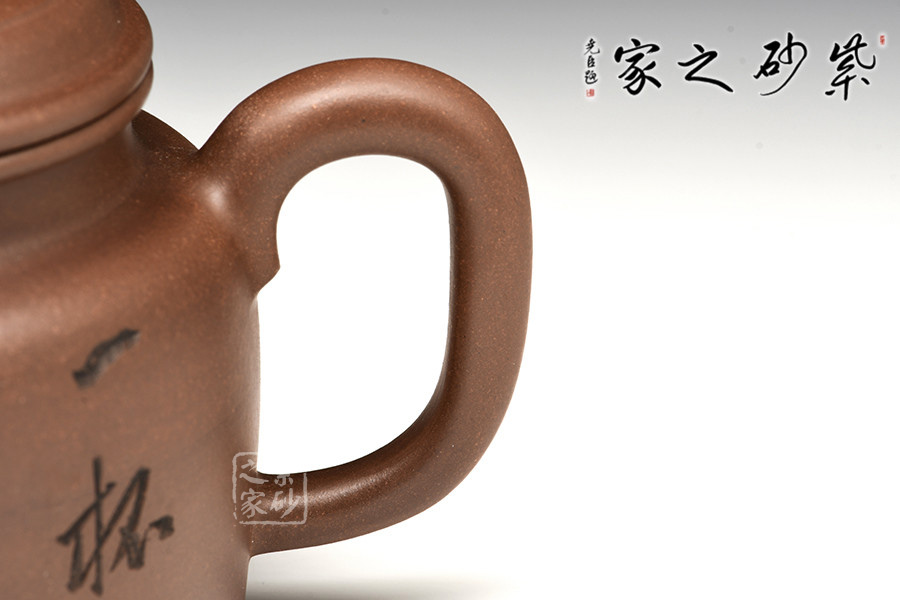 此作器形端莊穩(wěn)重,比例協(xié)調(diào),結(jié)構(gòu)嚴(yán)謹(jǐn)。壺鈕與器身形似,直流、耳型鋬,舒曲自然,有清正直諫君子之風(fēng)度。壺肩線條圓轉(zhuǎn),過(guò)渡極其自然。壺口之上下圓線,像雙唇輕抿,平和端莊、神態(tài)自若,而蓋上的一條細(xì)線作為裝飾,真正神來(lái)之筆,其厚薄、寬窄、位置均是恰到好處。其壺底,如玉碧天成,形制極好,處理干凈利落,真正做到在極佳的審美上兼有極強(qiáng)的實(shí)用性。