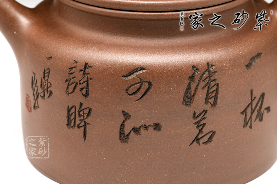 自制自銘:徐赟老師陶刻制壺雙精,師從陶刻大家錢一清和中國(guó)工藝美術(shù)大師曹亞麟,又得中國(guó)工藝美術(shù)大師鮑志強(qiáng)指點(diǎn)。
