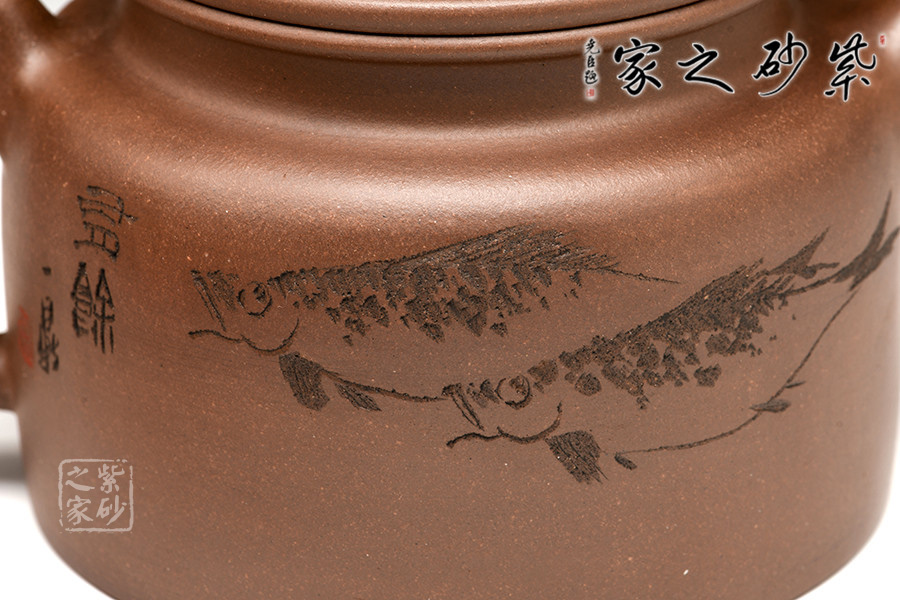 B面: 裝飾: 魚趣 裝飾者:徐赟 裝飾內(nèi)容: 刻畫逼真,栩栩如生,仿若暢游“壺”中