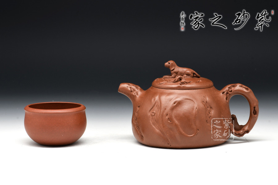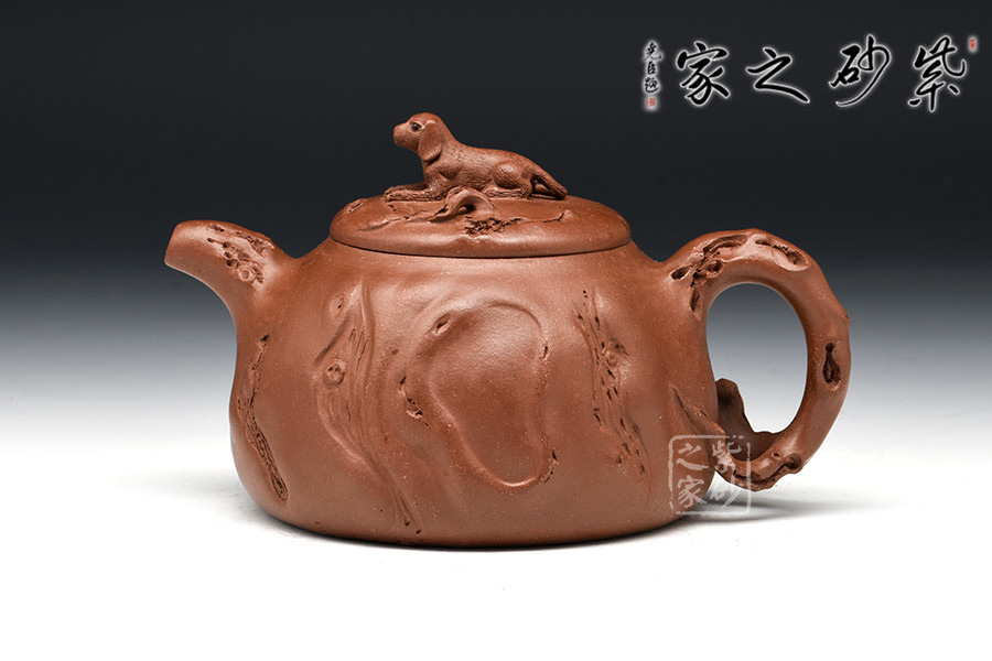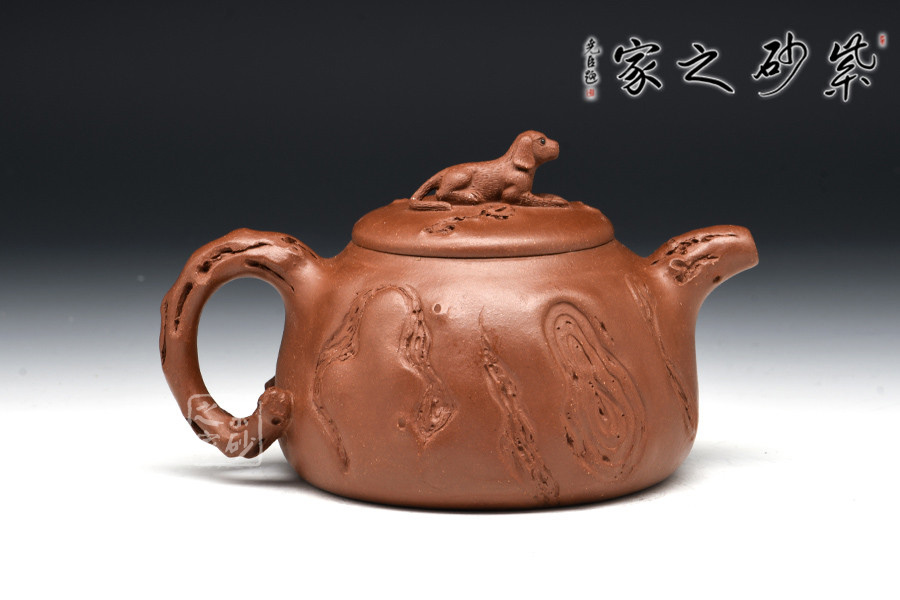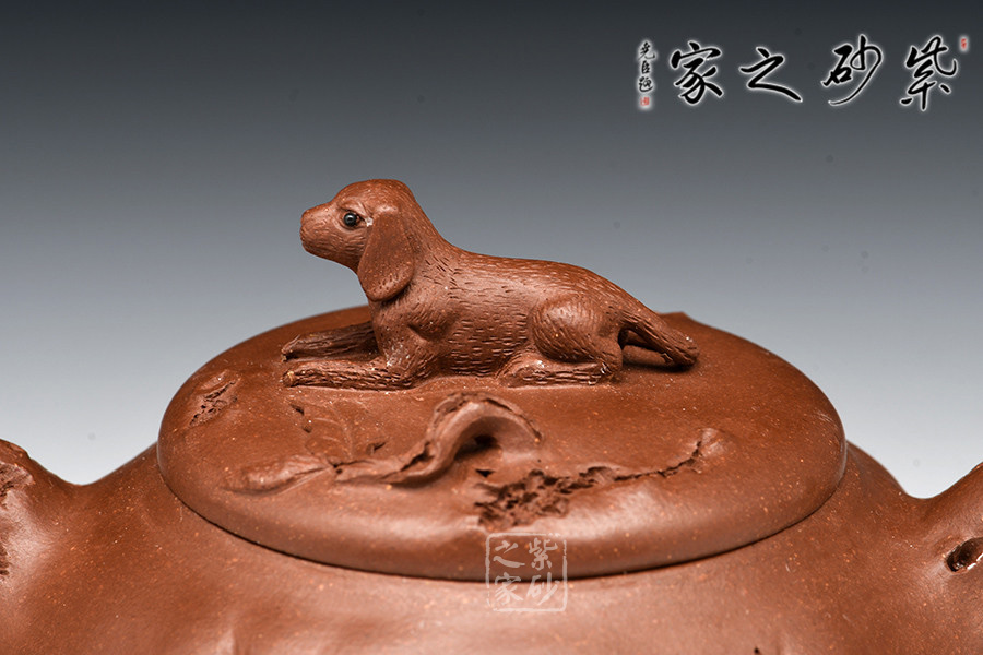 亮點在于此壺以一只趴臥的狗狗為鈕,“汪汪”叫的狗狗,寓意事業(yè)、生活“旺旺”,吉祥美滿之意盡顯。