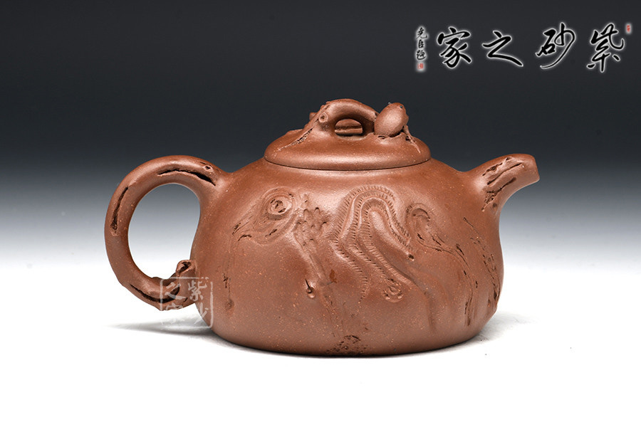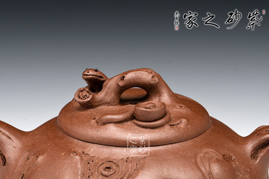 錢盤德,師從研究員級高工徐元明并得到其精心指點,博眾所長,練就一手過硬的純手工制壺技法。吸取自然形象的特征及生長規律,作品特點精壯老練,內涵豐富,造型變化無窮,趣味性強,具有較大的收藏價值。