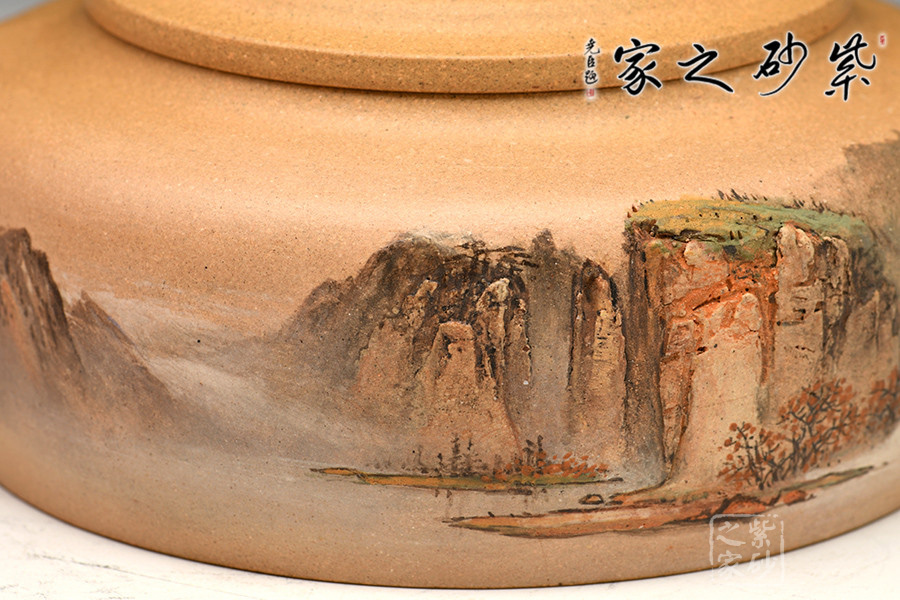老師紫砂泥繪的表現(xiàn)風(fēng)格,是在傳統(tǒng)泥繪的基礎(chǔ)上更多了一層藝術(shù)的氣息,融入了浮雕、西畫(huà)、國(guó)畫(huà)、陶瓷工藝等多種手法,綜合體現(xiàn)。