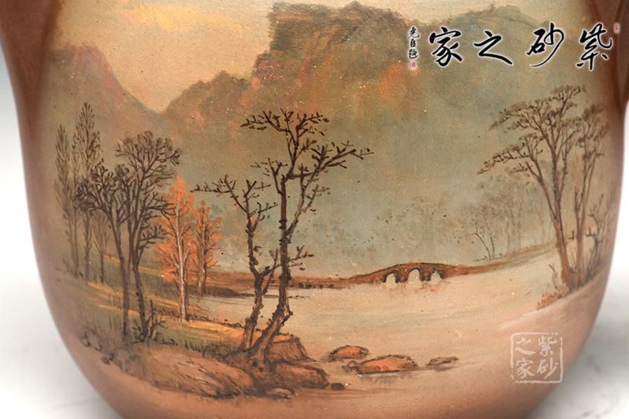 A面: 裝飾: 山景泥繪 裝飾者:何光宏 裝飾內(nèi)容: 似一副山水油畫,遙遠(yuǎn)深邃,畫已盡而意無窮