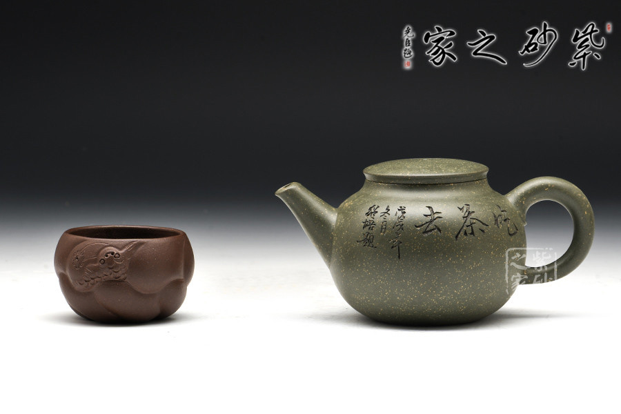 “古道問茶”壺造型自然美觀,趣味清幽,古樸醇和中帶著點點細砂,有如自然打磨后的光滑石頭,味道甚是逼真。