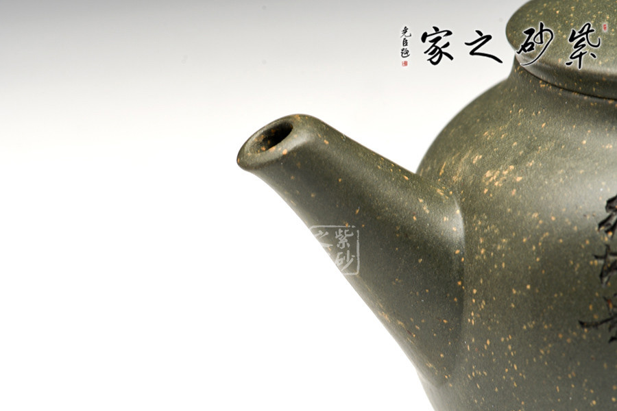 雪華綠泥: 泥料是與顧景舟的雪華壺屬同一配方配制而成,泥絞泥,泥中有段砂,燒成后的效果如同雪花似的!