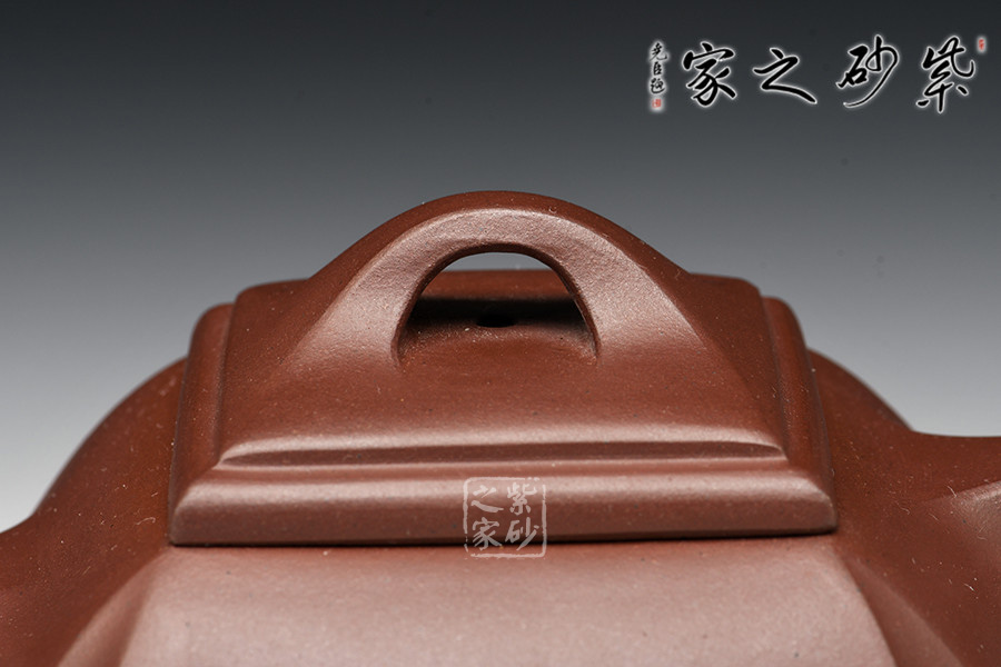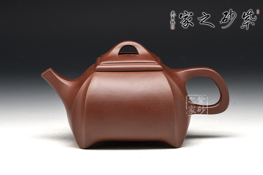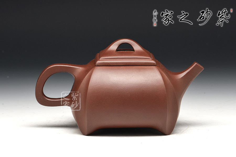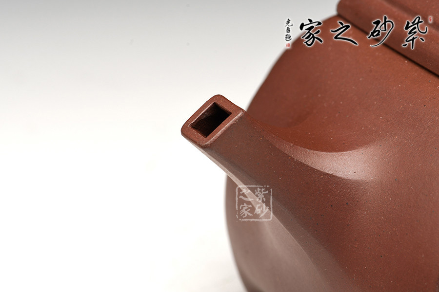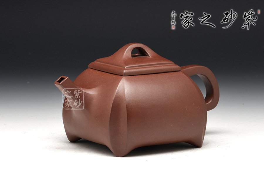 四方抽角壺,剛?cè)嵯酀?jì)。整個(gè)壺體端莊、深厚、流暢、氣度非凡,既保持傳統(tǒng)壺式的功力,又賦予其獨(dú)到的創(chuàng)新之處,制作難度較高。