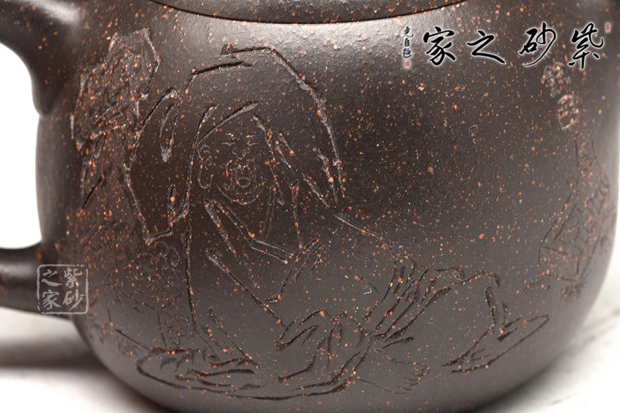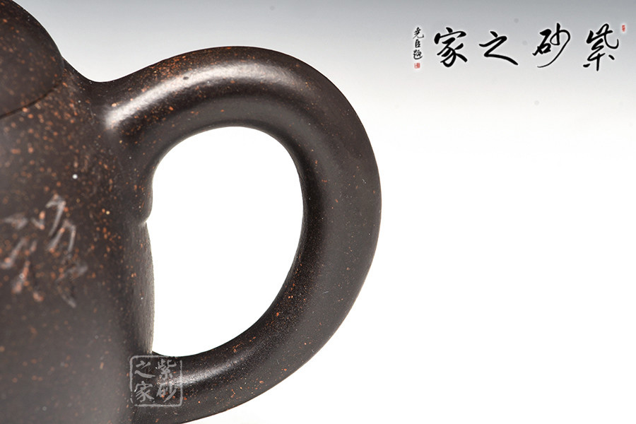 黑金砂是紫泥里的一種,原礦里含錳高,含鐵紅粉豐富,所以經過高溫燒成后壺身通體烏黑油亮隱隱泛著紅色的顆粒有如亞金一樣,故稱黑金砂,泥料含有朱砂,段泥砂的屬性,容易泡養(yǎng)。黑金砂紫泥中的精品