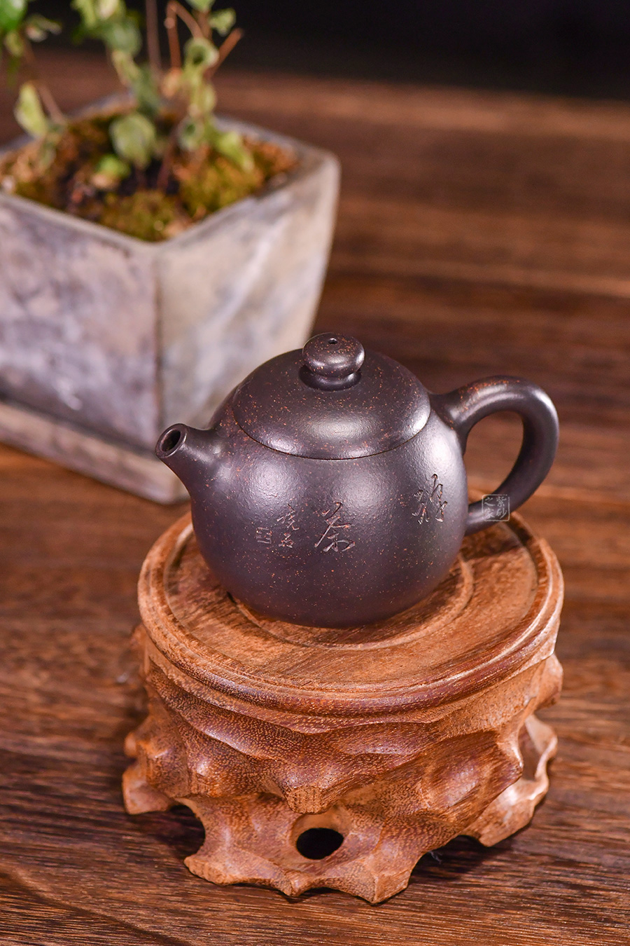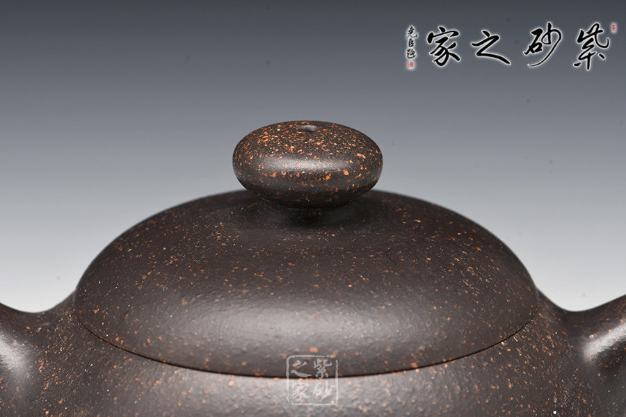 泥料采用黑金砂,其色如墨,配以點點金砂,似黑夜浩瀚天際,天星閃爍,秘靜寂、引人神往。