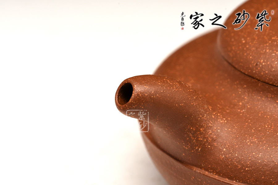 泥性:原礦因含緞泥、紅泥、紫泥等諸多共生礦,陶之后,于深沉之“橙紅色”底上,滿佈五彩斑斕的粗細(xì)、深淺之紅、黃星斑點(diǎn)。