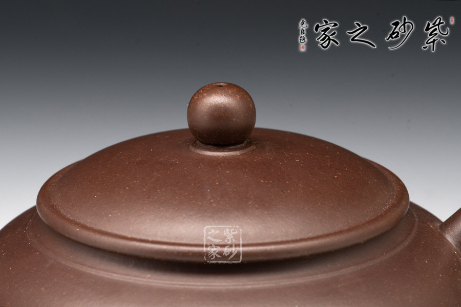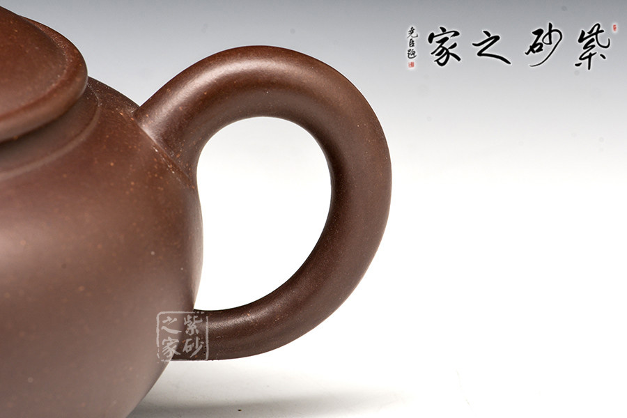 圓潤(rùn)壺是一款很傳統(tǒng)的壺型,此作色呈醇厚,細(xì)而純正,整個(gè)壺身結(jié)合其型、其料顯得非常有質(zhì)感。