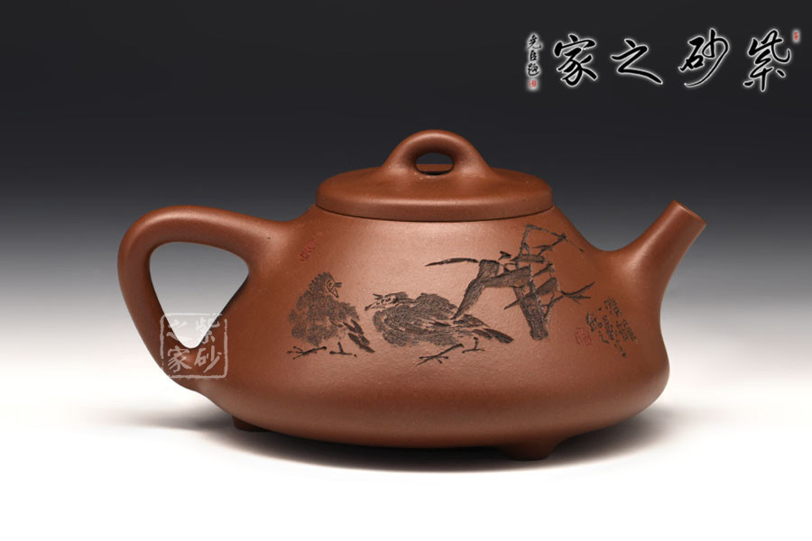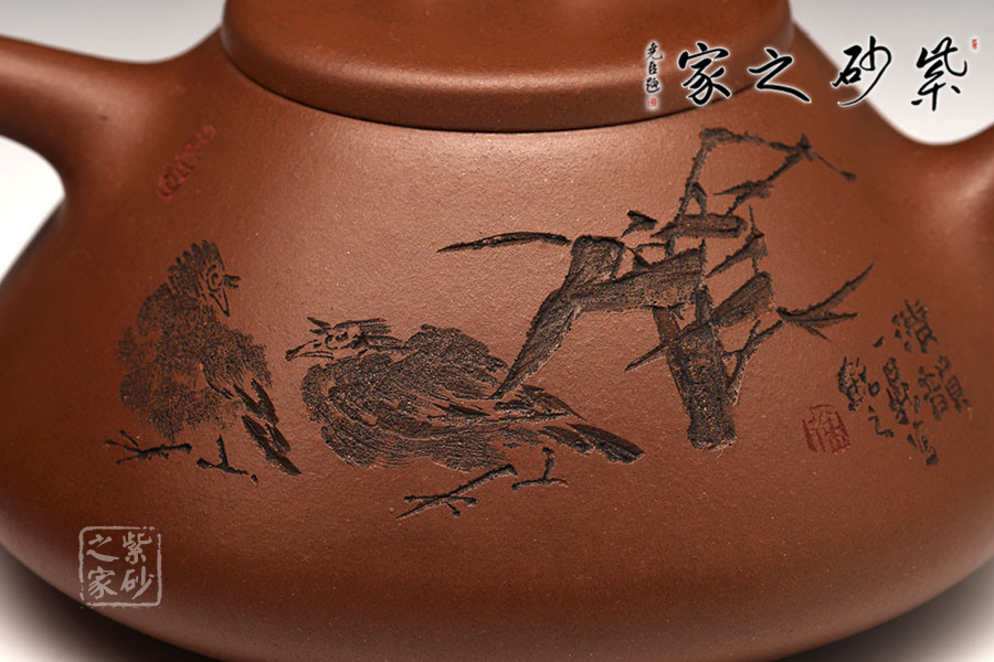 徐赟,精于陶刻,師從陶刻大家錢一清和中國工藝美術(shù)大師曹亞麟,又得中國工藝美術(shù)大師鮑志強(qiáng)指點(diǎn),陶刻制壺雙精。