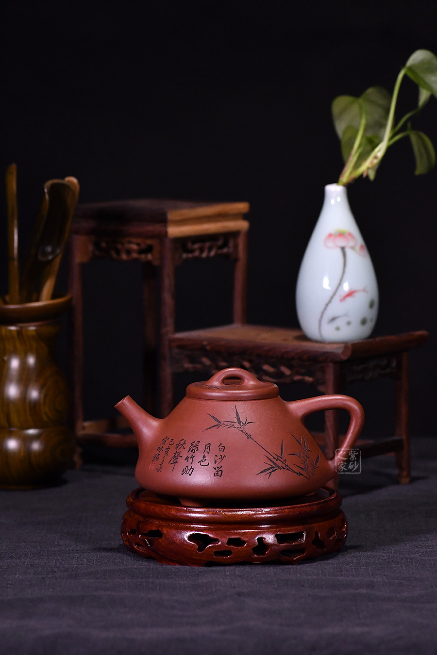 沖茗特性:溫和典雅,茶湯韻味悠揚(yáng)、沉著持久,養(yǎng)泡日久,泥色由棕變幻為古黯肝色,愈顯古樸素雅,明潤(rùn)光和也!