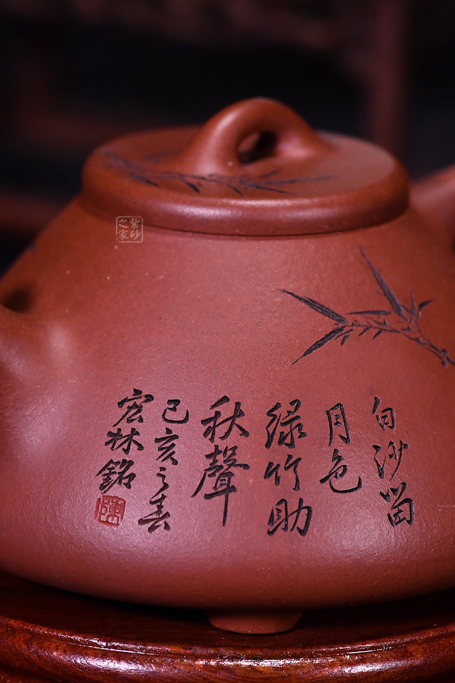 刀中見神采,刀下見神韻:實(shí)力派陶刻名家陳宏林捉刀刻繪,竹林書法裝飾,觀之怡情悅目,增添此作的藝術(shù)價(jià)值。