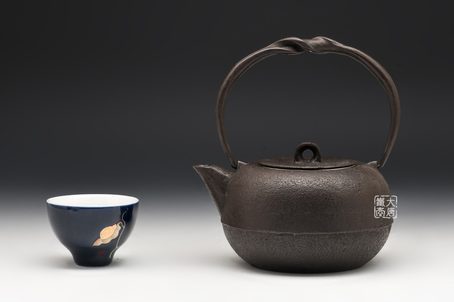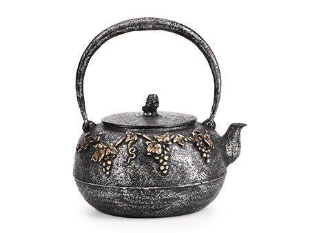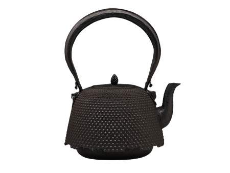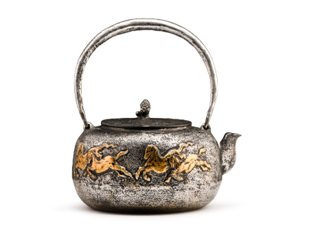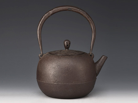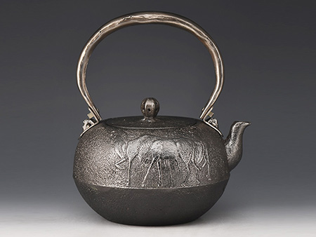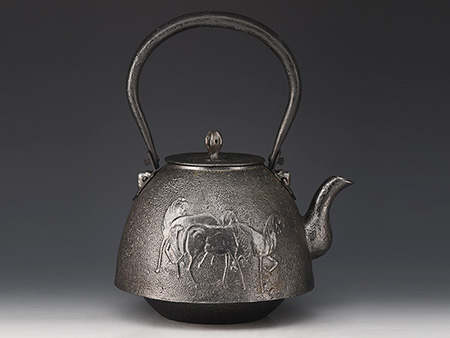 虎山工房創(chuàng)立于1955年,位于盛岡市手作村,是日本南部鐵器中的重要代表?!被⑸健敝从诔醮獛熜芄绕郊某錾厥且郧澳喜糠曫B(yǎng)老虎的地方,故取“虎山”作為工房的名字。熊谷平吉擅長印刻湯釜和鐵瓶上的圖案,制作的鐵器帶有濃厚的藝術(shù)氣息,被視為鐵和火融合于一身的茶道藝術(shù)品。虎山工房制作的鐵瓶,主要以砂模澆鑄的方法為主,但是改進(jìn)了木質(zhì)刮板的制模技術(shù),從而得以制作出多邊形的鐵器,在南部鐵器中獨(dú)樹一幟。