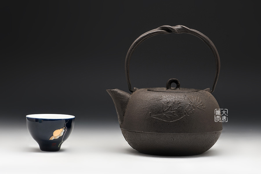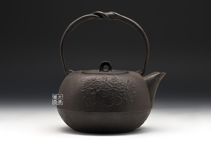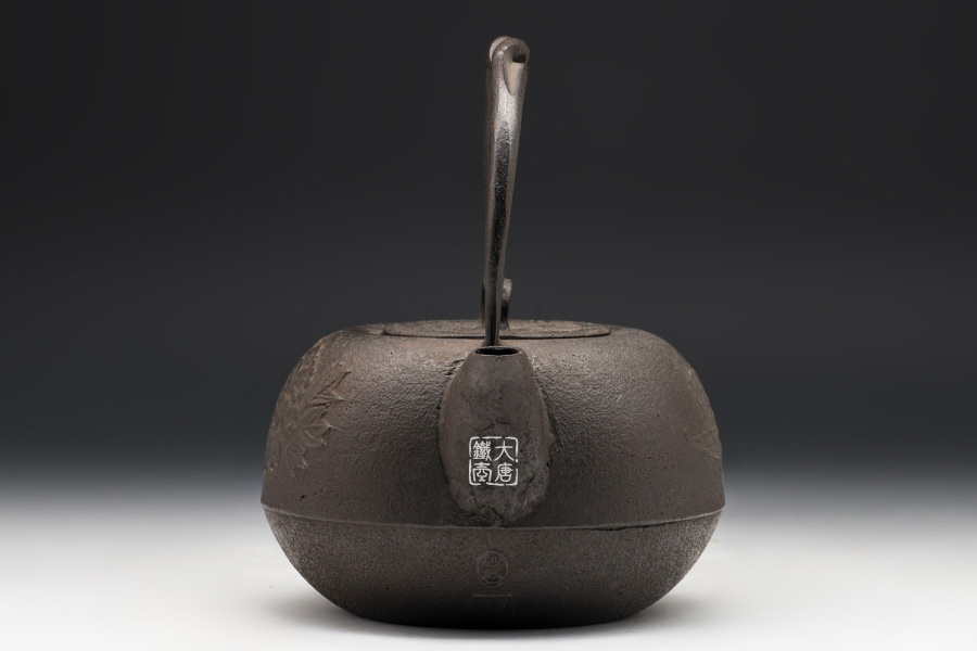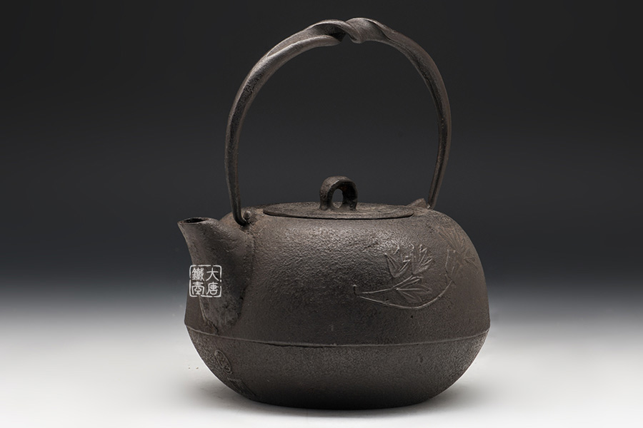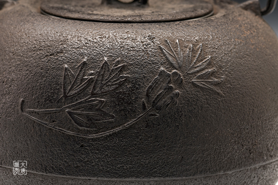 虎山工房創(chuàng)立于1955年,位于盛岡市手作村,是日本南部鐵器中的重要代表?!被⑸健敝从诔醮獛熜芄绕郊某錾厥且郧澳喜糠曫B(yǎng)老虎的地方,故取“虎山”作為工房的名字。熊谷平吉擅長印刻湯釜和鐵瓶上的圖案,制作的鐵器帶有濃厚的藝術(shù)氣息,被視為鐵和火融合于一身的茶道藝術(shù)品。虎山工房制作的鐵瓶,主要以砂模澆鑄的方法為主,但是改進(jìn)了木質(zhì)刮板的制模技術(shù),從而得以制作出多邊形的鐵器,在南部鐵器中獨樹一幟。